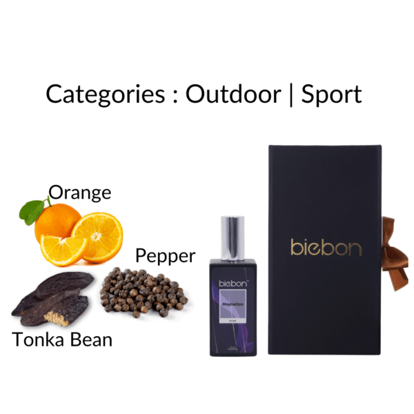 Biebon Magnetism is a fresher and sharper fragrance. The crystal clear beginning introduces note water and it is followed by woodsy and spice character of the fragrance.